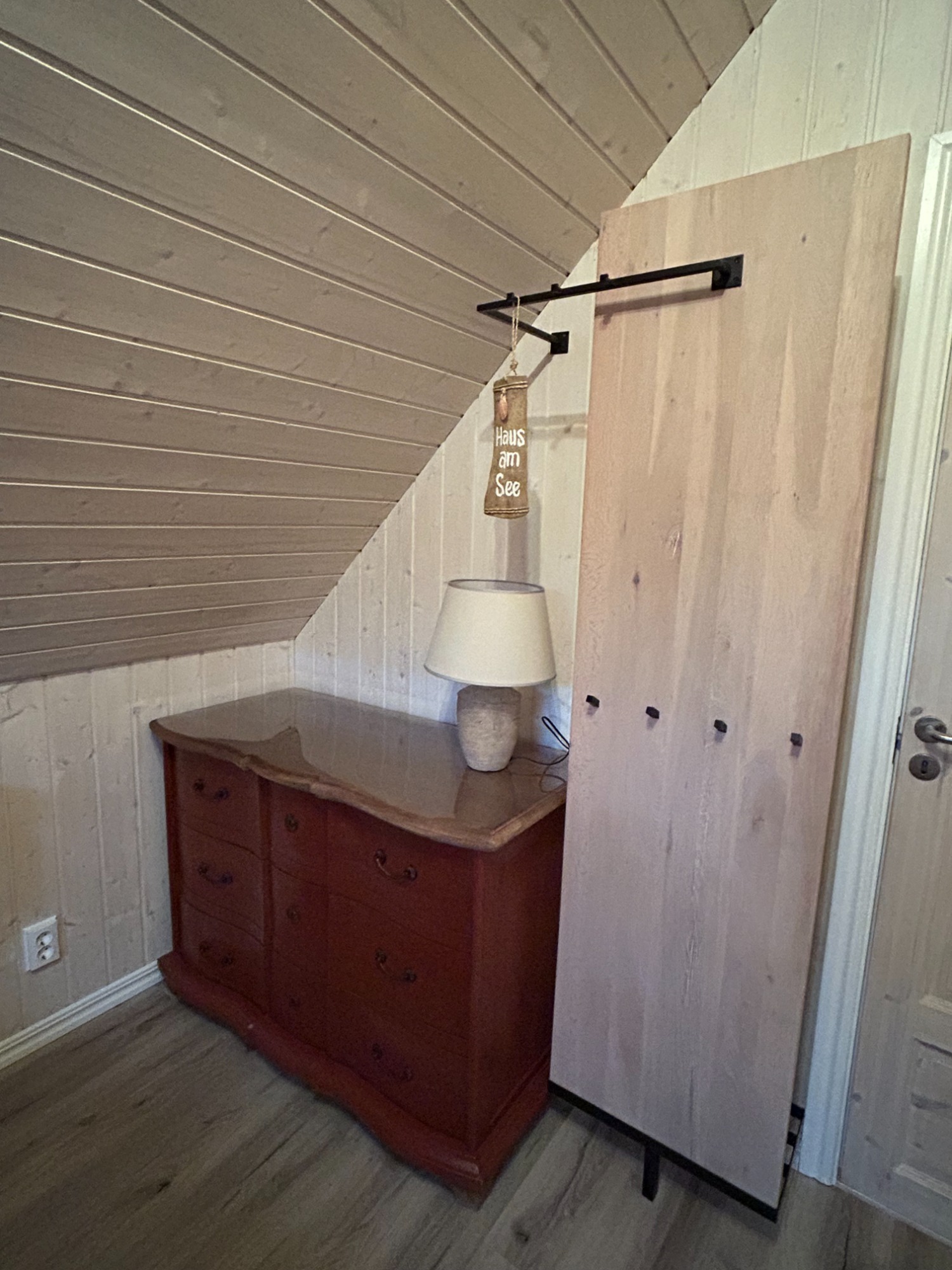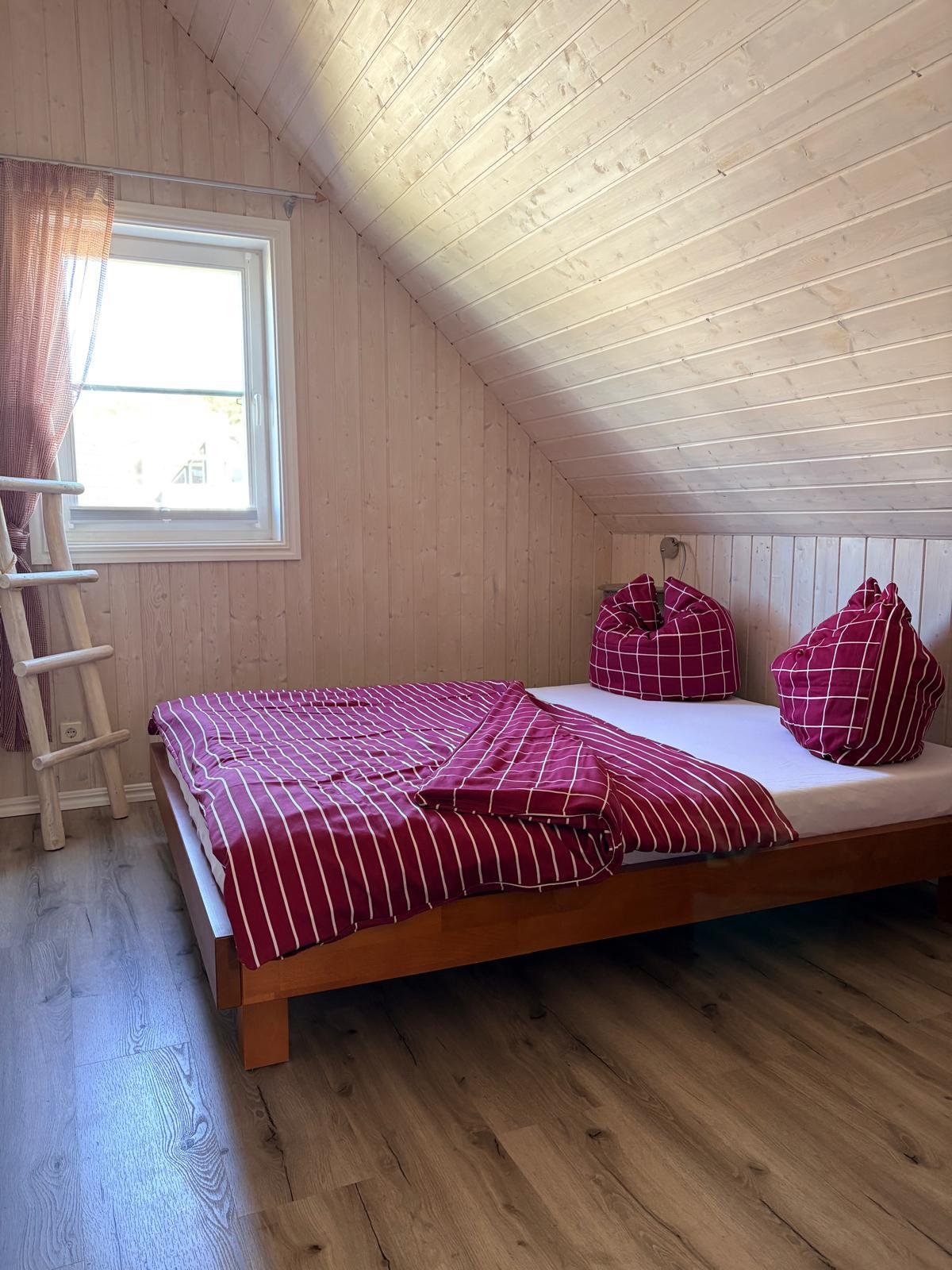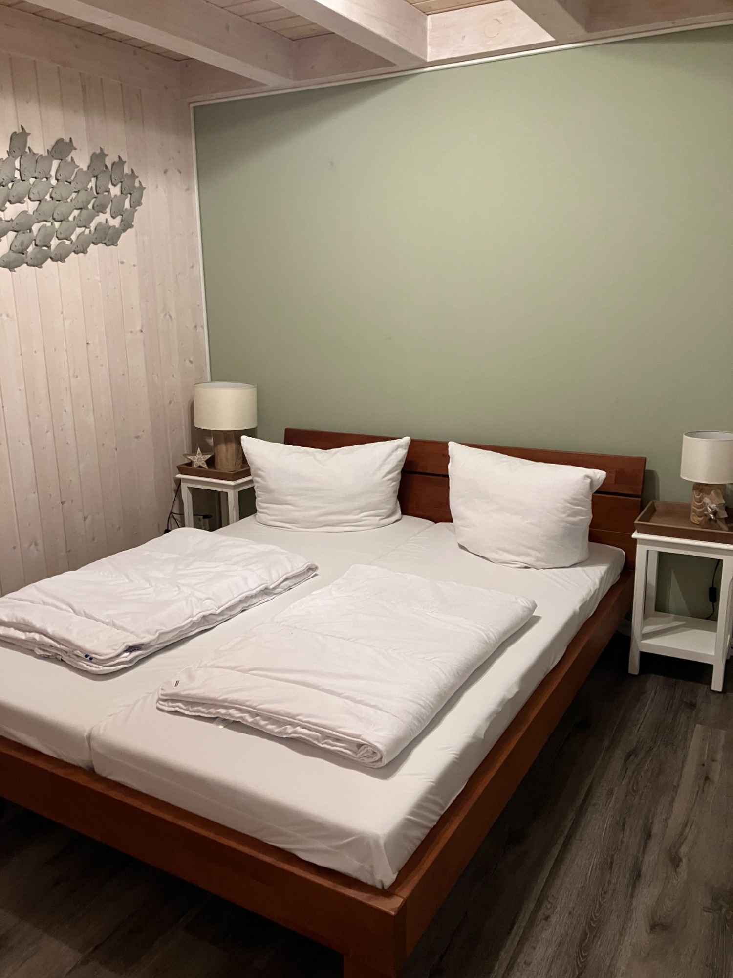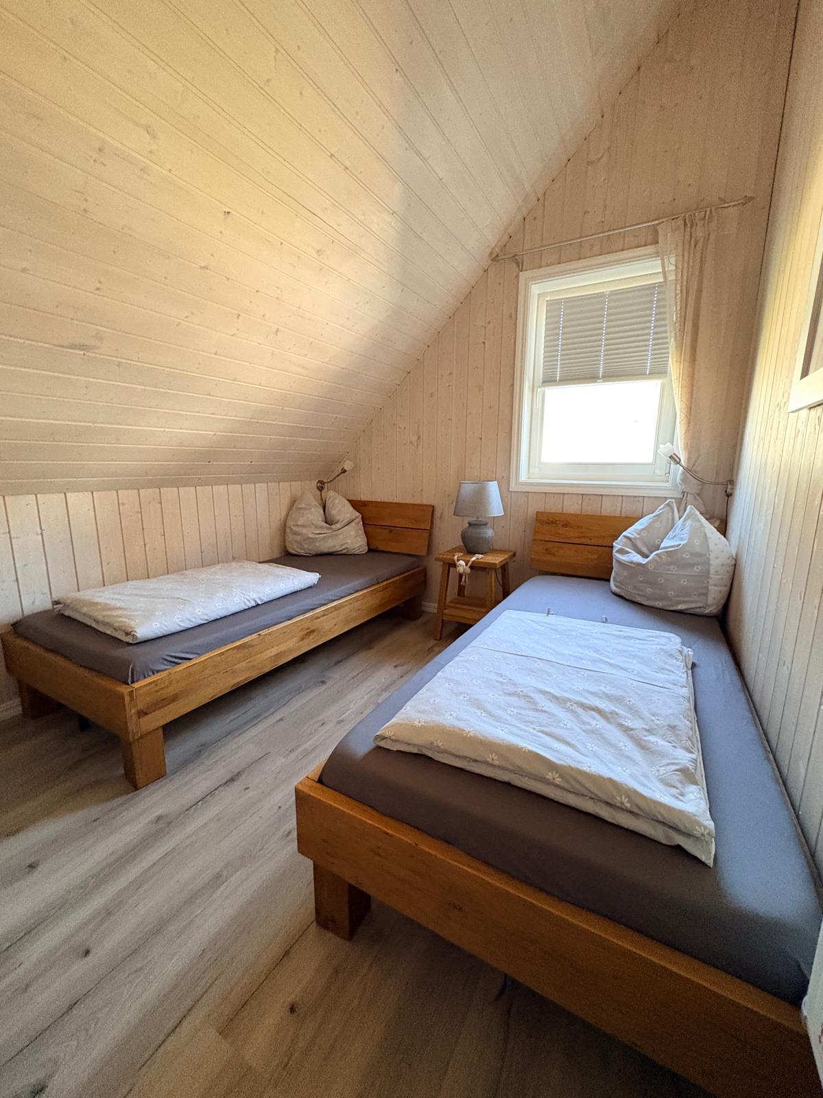 - zwei Schlafzimmer oben mit einem Doppelbett (Komfortmatratzen) und zwei Einzelbetten (Komfortmatratzen)