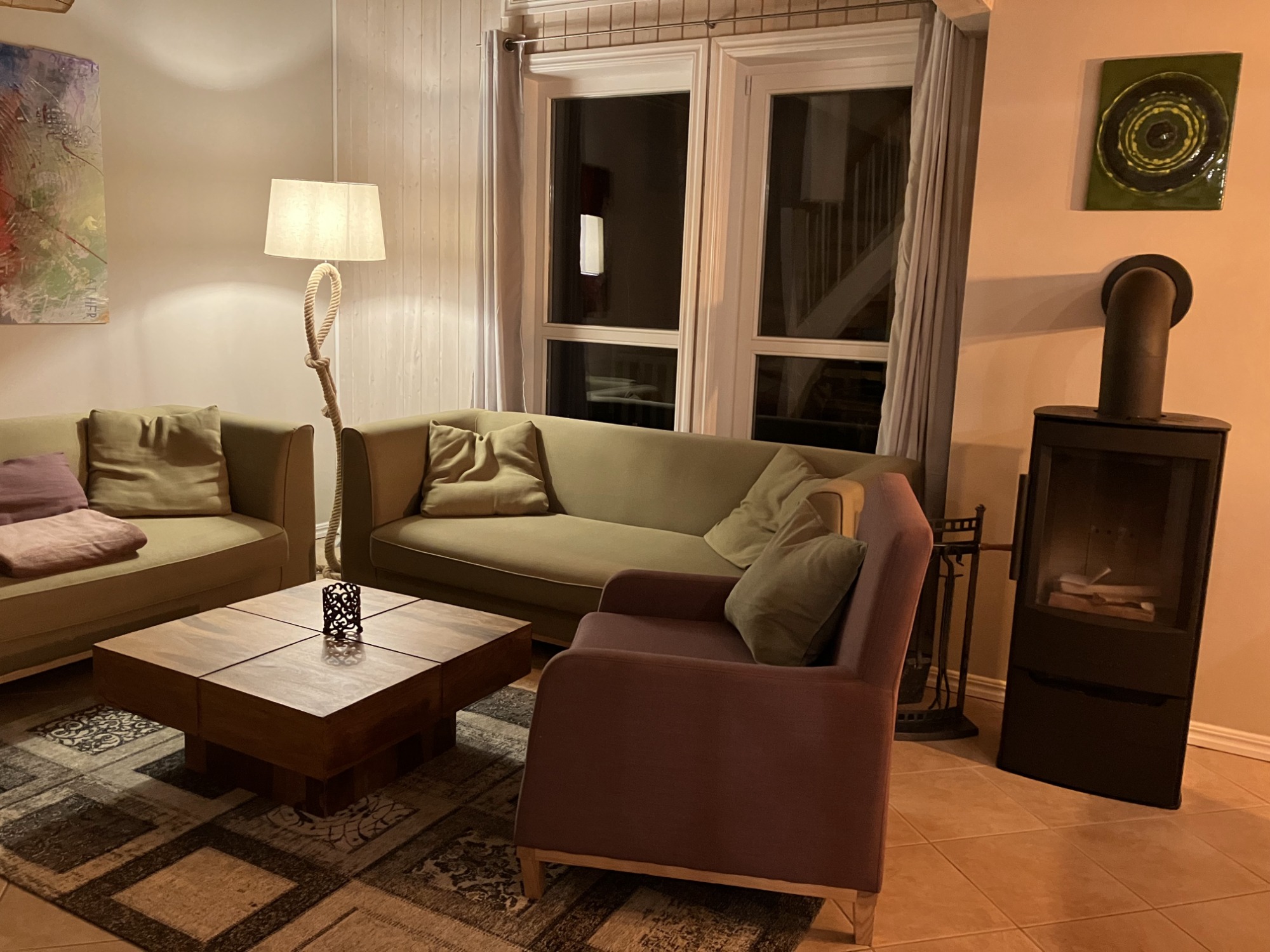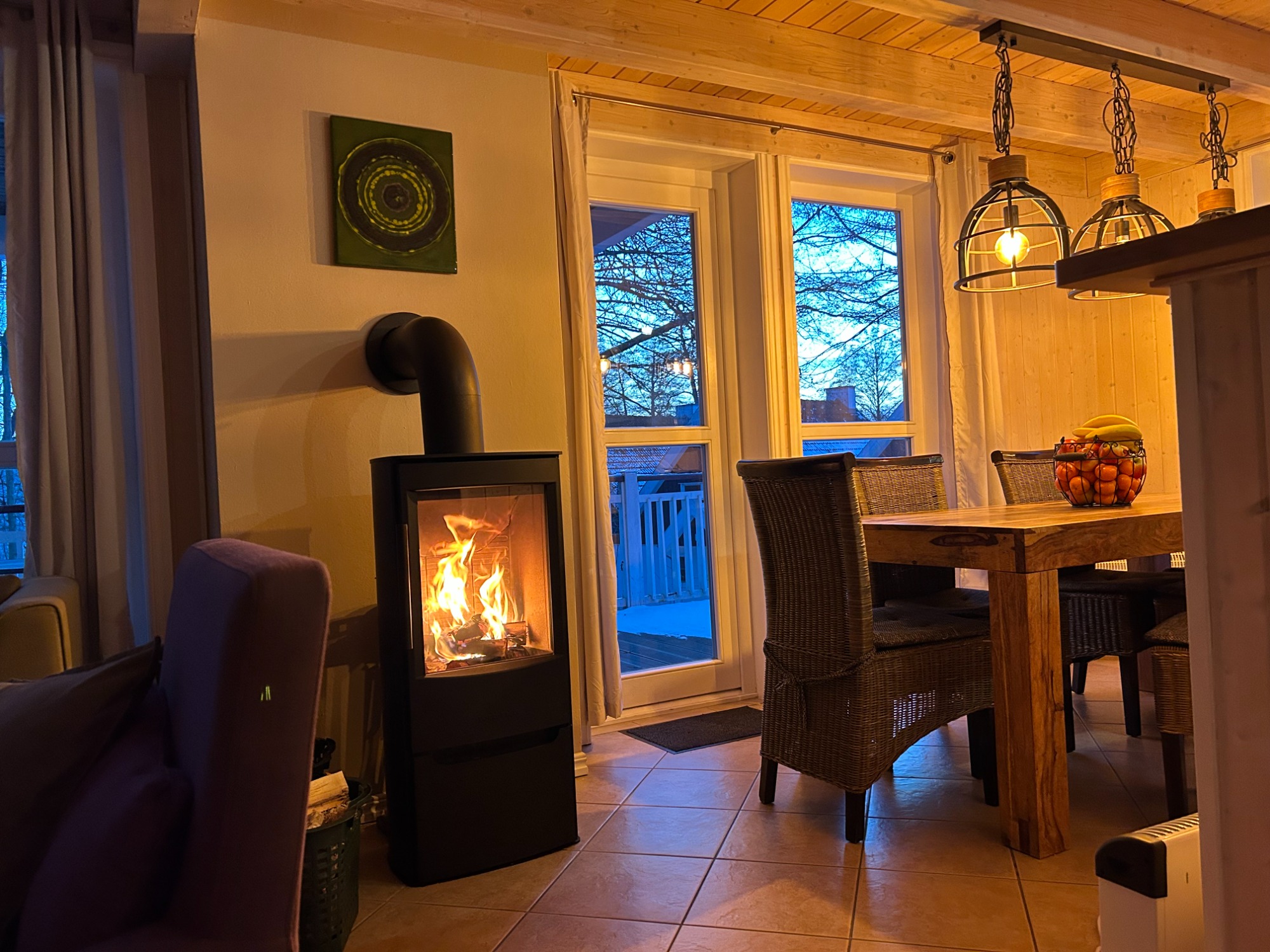 - gemütlicher Wohn- und Essbereich mit Kaminofen, TV und DVD-Player